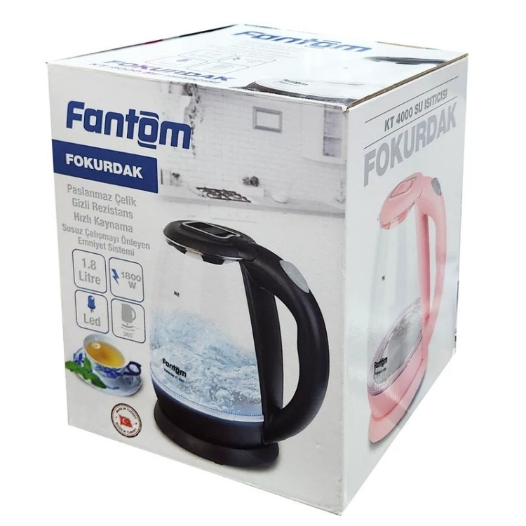 کتری برقی فانتوم ساخت ترکیه،ظرفیت مخزن آب 2 لیتری ، المنت مخفی از استیل ضد زنگ و قابلیت جوش سریع است.علاوه بر این، به لطف بدنه محصول با چرخش 360 درجه، به شما امکان می دهد دستگاه خود را بدون اتصال به کابل حرکت دهید. سیستم ایمنی که از عملکرد بدون آب جلوگیری می کند، در مصرف انرژی صرفه جویی کرده و قابلیت خودکار خاموشی در موقع جوشیدن آب نیز از دیگر ویژگی های این کتری برقی است. محصول کتری برقی فانتوم مدل KT-2450 با ظاهری زیبا و قدرت 1800 وات، یکی از وسایل بسیار کاربردی در آشپزخانه های هر خانه، دفتر با محل کار شما است. این کتری قابلیت جوشاندن حداکثر 2 لیتر آب را در کوتاهترین زمان ممکن دارد. همچنین، چراغ LED آن، امکان مشاهده وضعیت جوش آب را به شما می دهد.