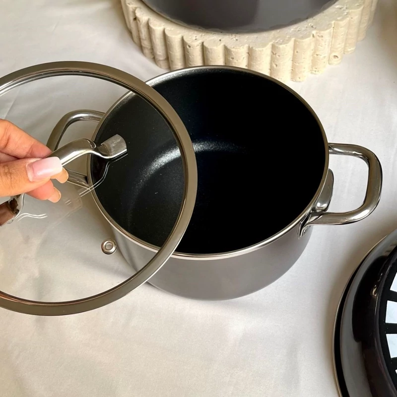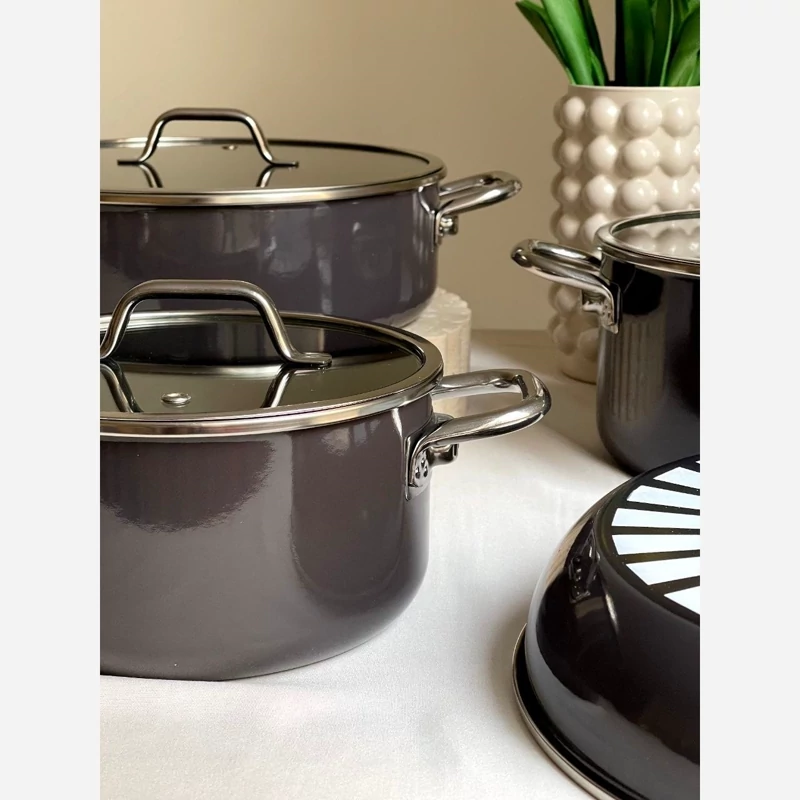 با ارائه ضمانت پخت سالم و ایمن با کیفیت برتر و پوشش لعابی بادوام، این مجموعه ظروف آشپزی با طراحی مدرن خود که ترکیبی از دوام و ظرافت است، جلوه زیبایی به آشپزخانه شما می بخشد.