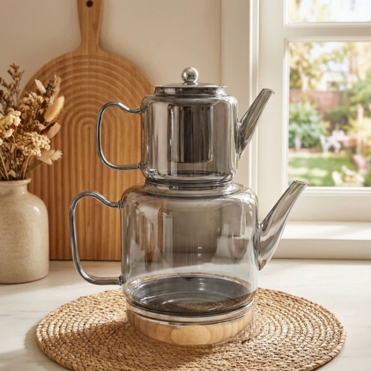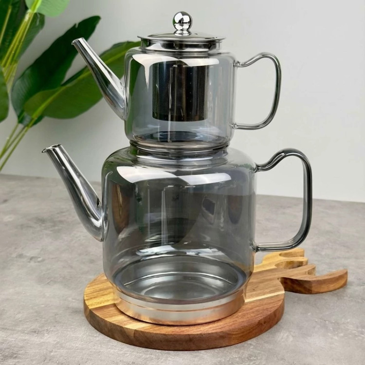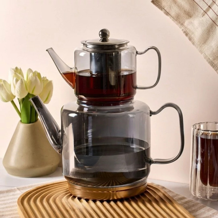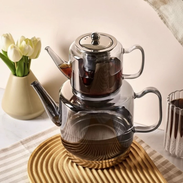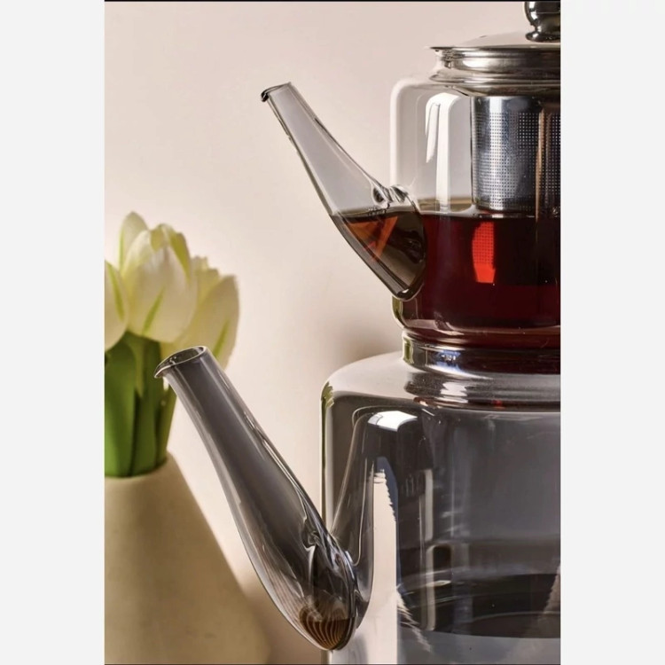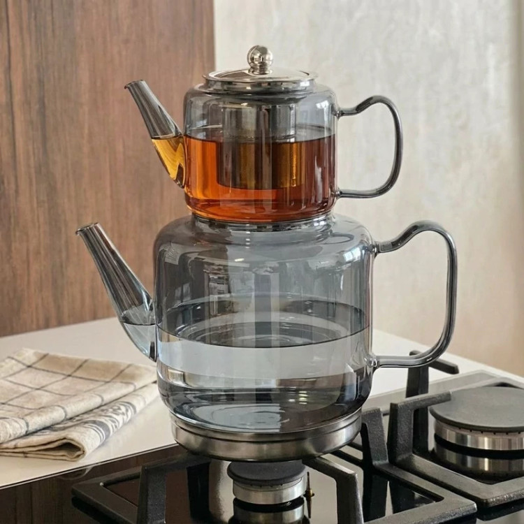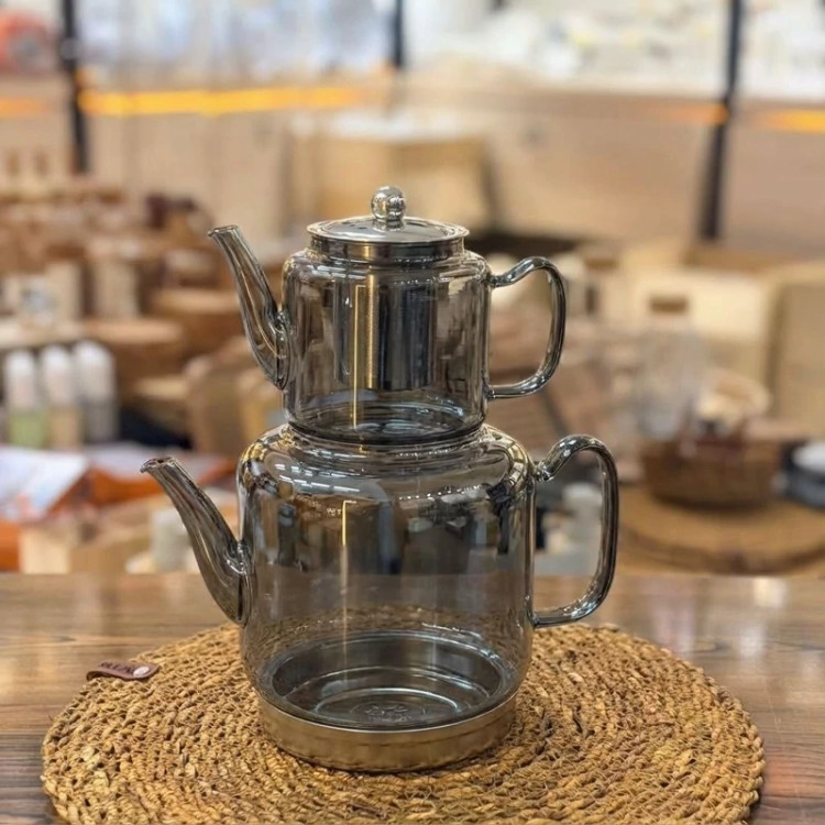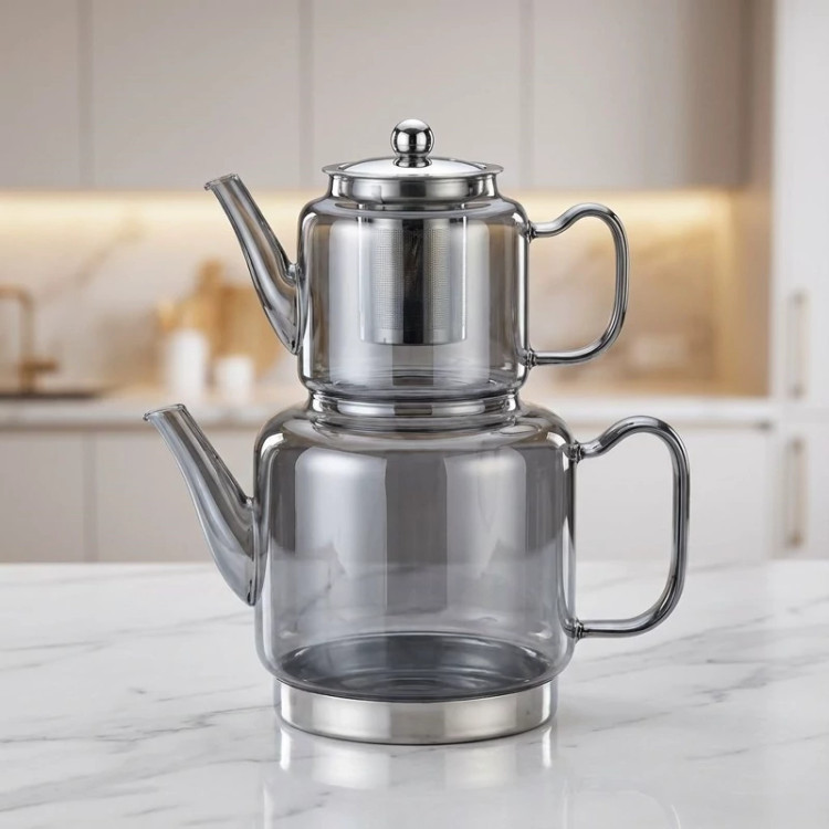 ◼️ست کتری قوری پیرکس کف استیل 304 ☑️ ... ▪️محصول وارداتی ... ▪️تنوع رنگ/ دودی ... ▪️تعدادپارچه / 3پارچه (کتری دربجداگانهندارد) ... ▪️حجمکتری/ 2لیتر ▪️حجمقوری/700میل ... ▪️ارتفاع کتری و قوری روهم 26cm ... ▪️وزن سبکوطراحی ارگونومیک ... ▪️شعله مستقیم ▪️پیرکس حرارتی / آنتی شوک ... ▪️(جنس بدنه کتری و قوری: پیرکس borosilicate مقاوم حرارتی) ... ▪️جنسپایینکتری:استیل 304 (_کف استیل304 باعث مقاومتبیشتر انتقال حرارت یکنواخت استاندارد _بادوام و مناسب برای قرارگیری روی شعله پخشکن) ... ▪️قوریمجهزبهصافی استیلضدزنگ/استیل 304 ▪️جنس در/ استیل (دارایسوراخخروجبخار) .... ▪️کتریقوریتمامپیرکس باکفاستیل 304 – شفاف،زیبا ومناسبدمنوشهای سالم .... ▪️اگربهدنبالیکمسیرسالمتر، حرفهایتر برای دم کردن چای و دمنوش هستید، این کتریقوری تمام پیرکس با کف استیل304بهترین انتخاب شماست. ▪️ترکیب شیشهی مقاوم حرارتی و کف استیل باکیفیت، هم ظاهر محصول را جذاب کرده و هم عملکرد آن را بهصورت چشمگیری بالا برده است. ▪️شفافیت کامل پیرکس، امکان دیدن فرآیند دمکشیدن چای را فراهم میکند و کف استیل 304 باعث مقاومت بیشتر، انتقال حرارت استاندارد و دوام طولانیمدت میشود. ▪️💧 شستشوی آسان: برای ماندگاری درخشش شیشه و استیل، شستشو بهصورت دستی با اسفنج نرم پیشنهاد میشود.