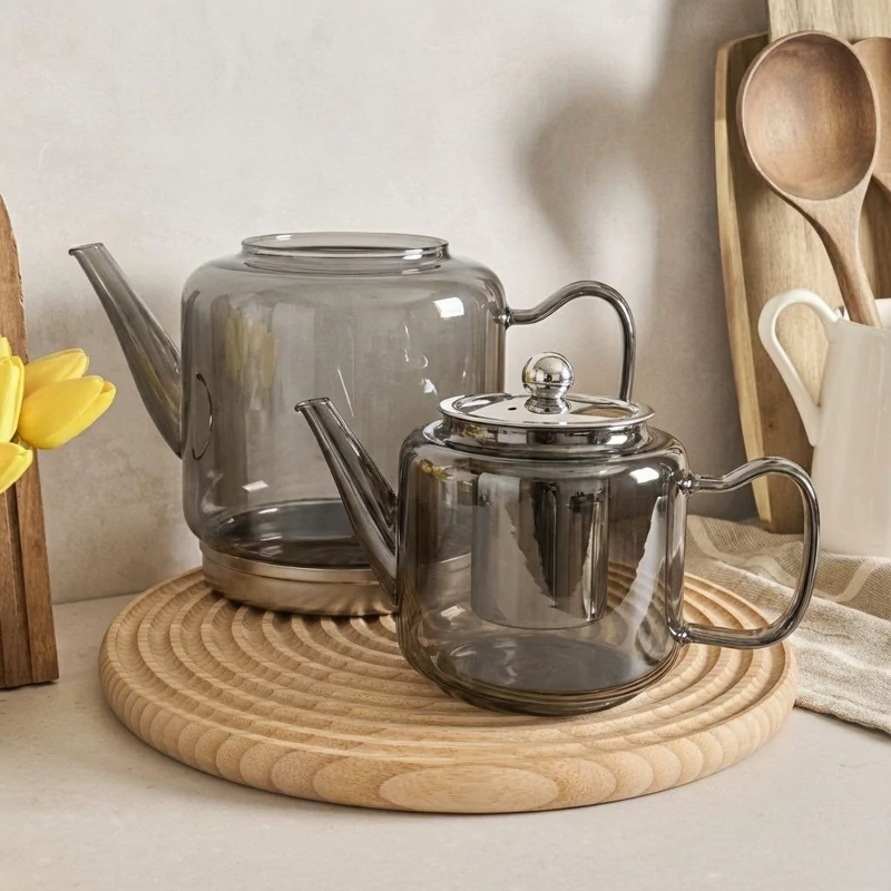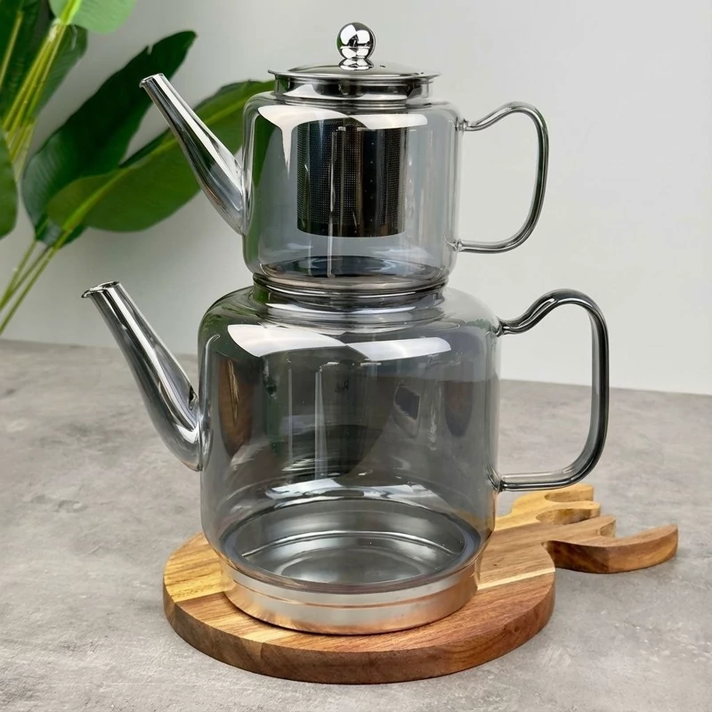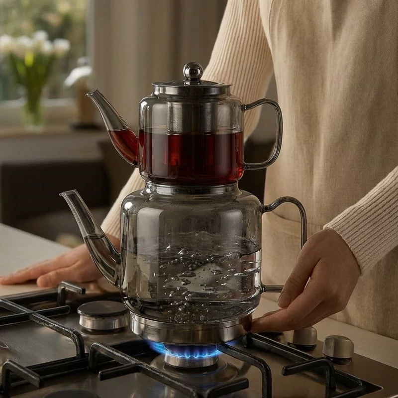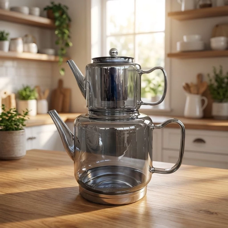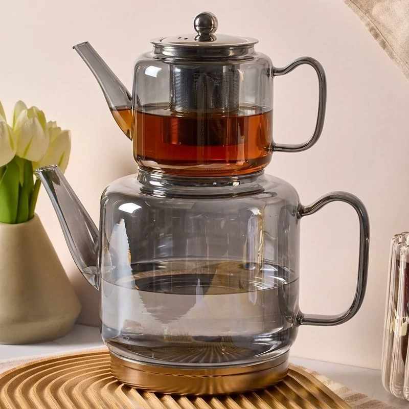 ◼️ست کتری قوری پیرکس کف استیل 304 ☑️ ... ▪️محصول وارداتی ... ▪️تنوع رنگ/ دودی ... ▪️تعدادپارچه / 3پارچه (کتری دربجداگانهندارد) ... ▪️حجمکتری/ 2لیتر ▪️حجمقوری/700میل ... ▪️ارتفاع کتری و قوری روهم 26cm ... ▪️وزن سبکوطراحی ارگونومیک ... ▪️شعله مستقیم ▪️پیرکس حرارتی / آنتی شوک ... ▪️(جنس بدنه کتری و قوری: پیرکس borosilicate مقاوم حرارتی) ... ▪️جنسپایینکتری:استیل 304 (_کف استیل304 باعث مقاومتبیشتر انتقال حرارت یکنواخت استاندارد _بادوام و مناسب برای قرارگیری روی شعله پخشکن) ... ▪️قوریمجهزبهصافی استیلضدزنگ/استیل 304 ▪️جنس در/ استیل (دارایسوراخخروجبخار) .... ▪️کتریقوریتمامپیرکس باکفاستیل 304 – شفاف،زیبا ومناسبدمنوشهای سالم .... ▪️اگربهدنبالیکمسیرسالمتر، حرفهایتر برای دم کردن چای و دمنوش هستید، این کتریقوری تمام پیرکس با کف استیل304بهترین انتخاب شماست. ▪️ترکیب شیشهی مقاوم حرارتی و کف استیل باکیفیت، هم ظاهر محصول را جذاب کرده و هم عملکرد آن را بهصورت چشمگیری بالا برده است. ▪️شفافیت کامل پیرکس، امکان دیدن فرآیند دمکشیدن چای را فراهم میکند و کف استیل 304 باعث مقاومت بیشتر، انتقال حرارت استاندارد و دوام طولانیمدت میشود. ▪️💧 شستشوی آسان: برای ماندگاری درخشش شیشه و استیل، شستشو بهصورت دستی با اسفنج نرم پیشنهاد میشود.