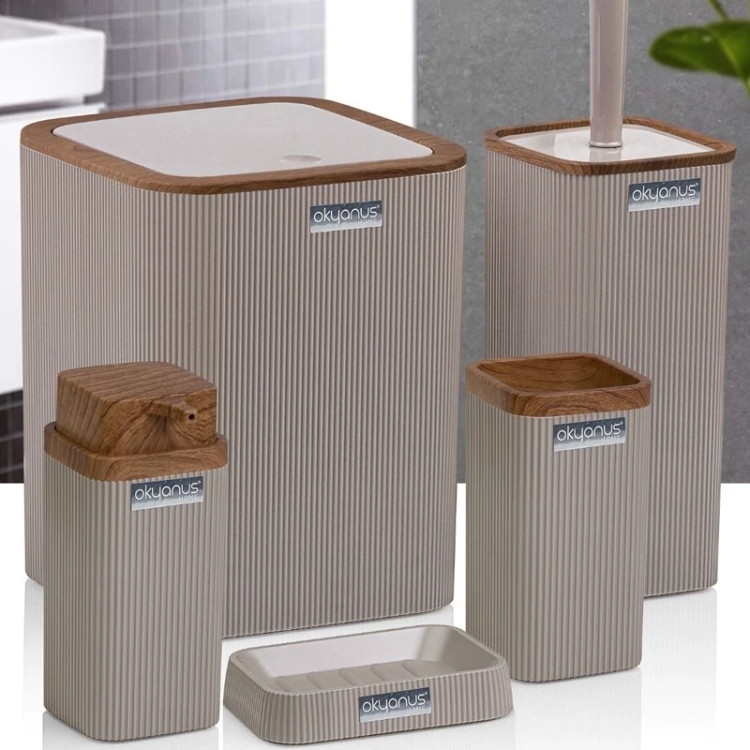 ست سرویس بهداشتی 5 پارچه اقیانوس دارای سطل آشغال 23سانتی متری ، فرچه همراه با ظرف 33سانتی متر ، جا صابونی مایع 16سانتی متر ، جا مسواک 13سانتی متر و جا صابونی 9سانتی متر می باشد .